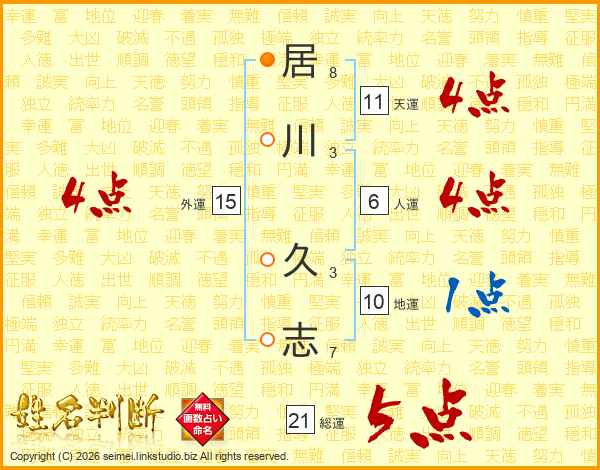 居川久志さんの総運は21画の5点!