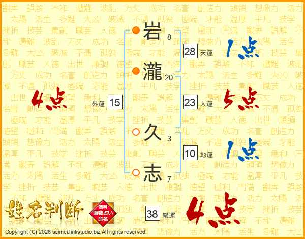 岩瀧久志さんの総運は38画の4点!