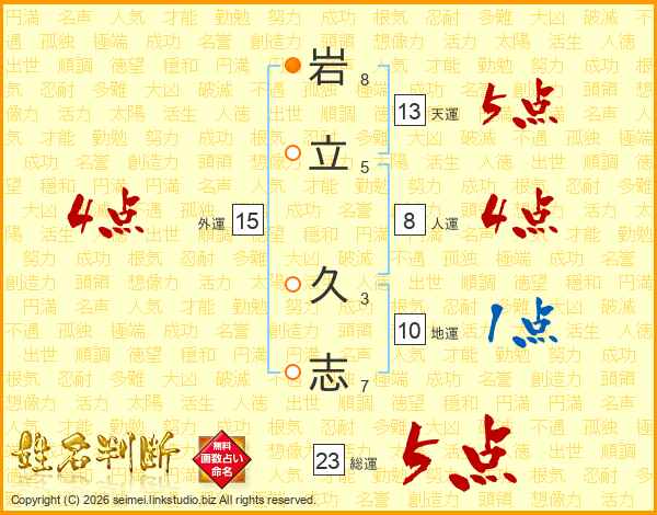 岩(8画)立(5画) 久(3画)志(7画)