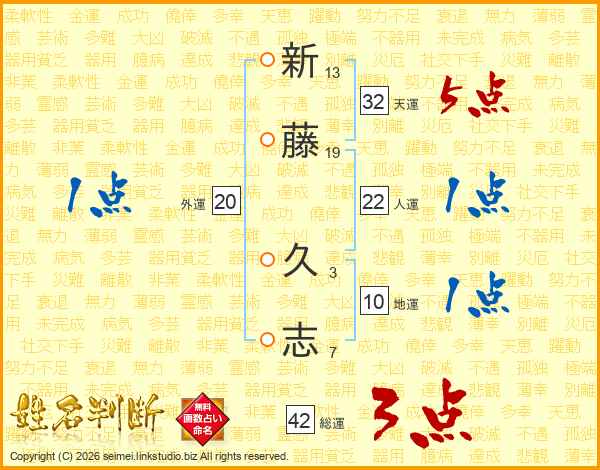 新藤久志さんの天運は32画の5点!