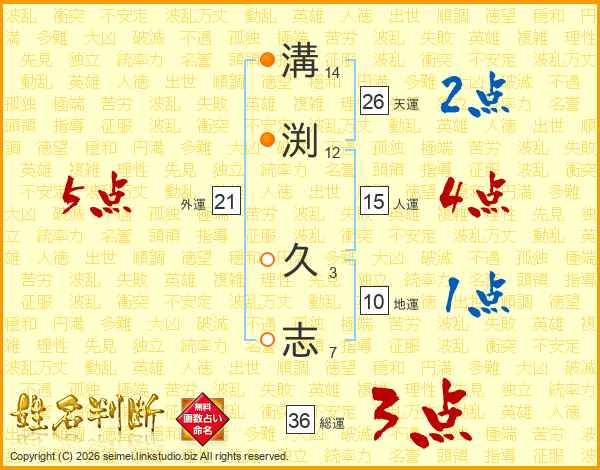 溝渕久志さんの天運は26画の2点!