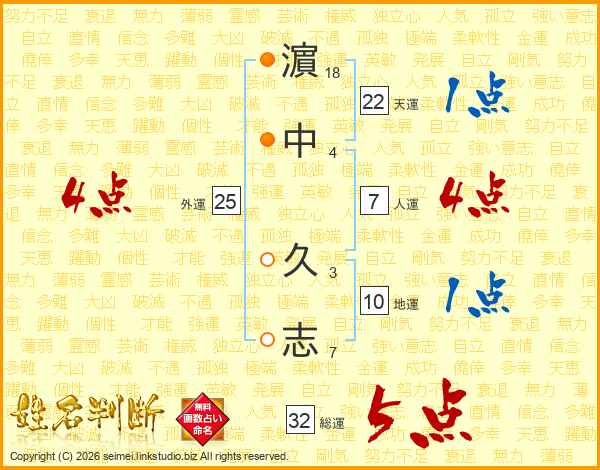 濵中久志さんの天運は22画の1点!
