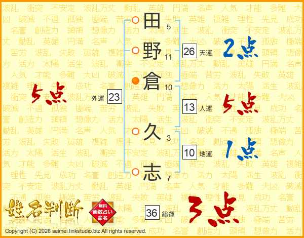 田野倉久志さんの天運は26画の2点!
