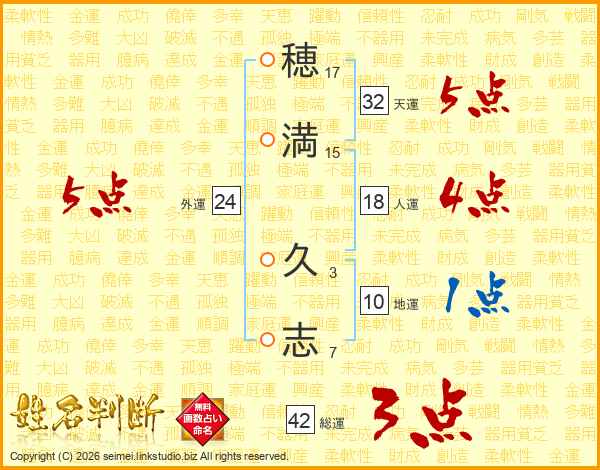 穂(17画)満(15画) 久(3画)志(7画)