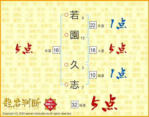 若園久志さんの総運は32画の5点!