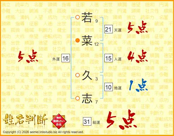 若菜久志さんの総運は31画の5点!