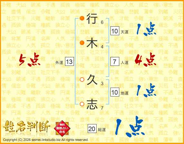 行木久志さんの人運は7画の4点!