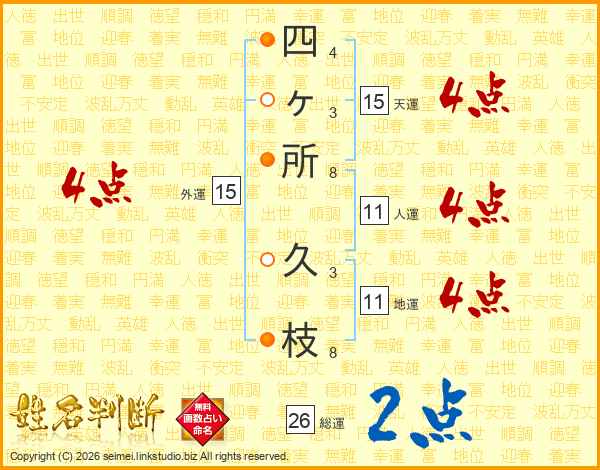 四ヶ所久枝さんの人運は11画の4点!