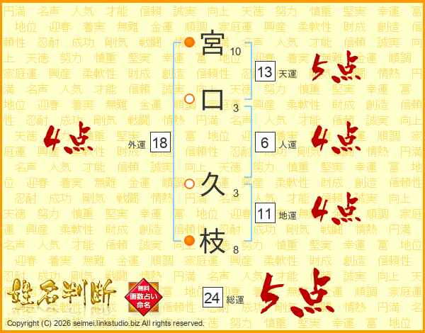 宮口久枝さんの天運は13画の5点!