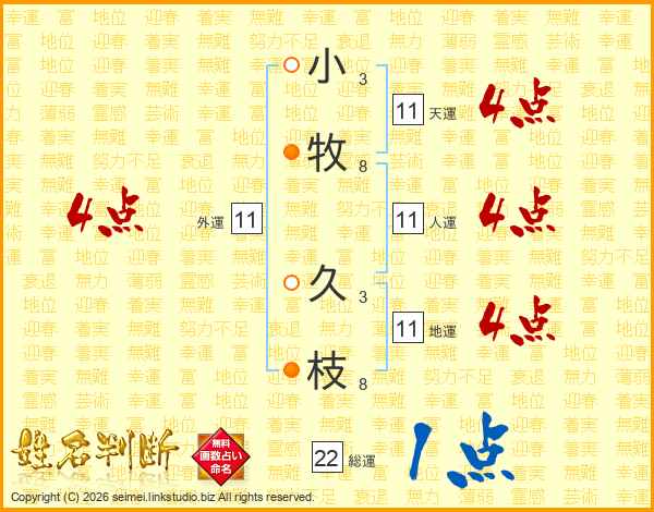小牧久枝さんの人運は11画の4点!