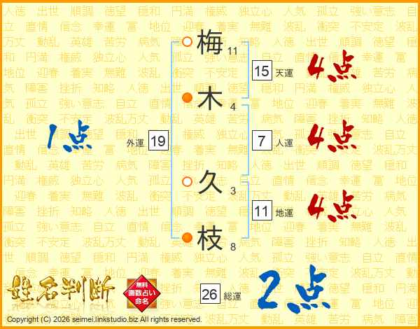 梅(11画)木(4画) 久(3画)枝(8画)