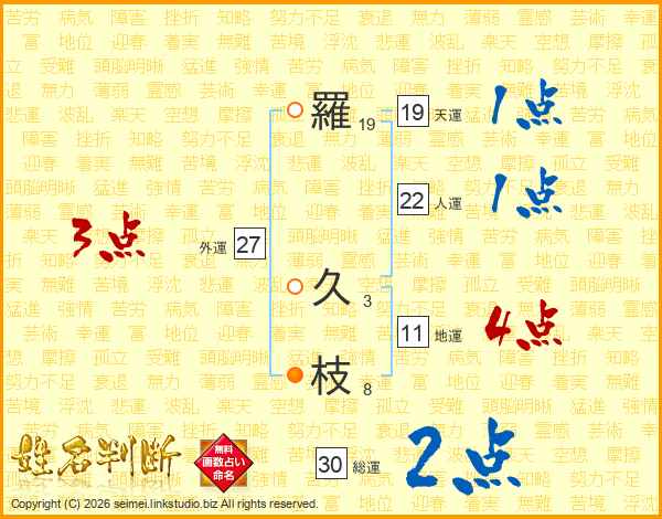 羅(19画) 久(3画)枝(8画)