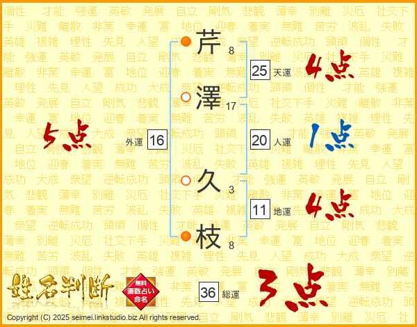 芹澤久枝さんの天運は25画の4点!