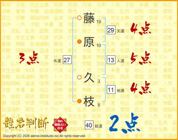 藤(19画)原(10画) 久(3画)枝(8画)