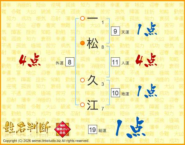 一(1画)松(8画) 久(3画)江(7画)