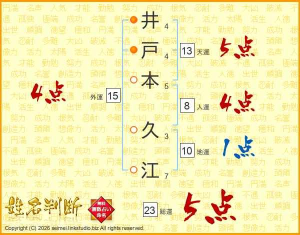 井戸本久江さんの総運は23画の5点!