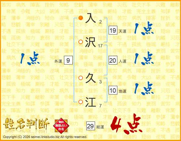 入沢久江さんの総運は29画の4点!