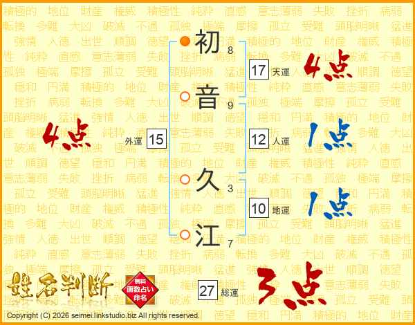初音久江さんの総運は27画の3点!