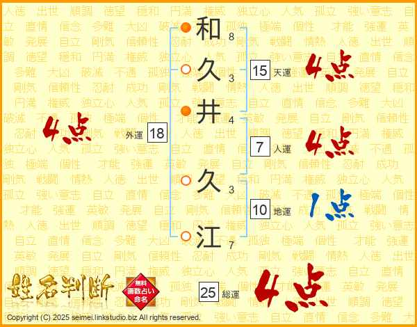 和(8画)久(3画)井(4画) 久(3画)江(7画)