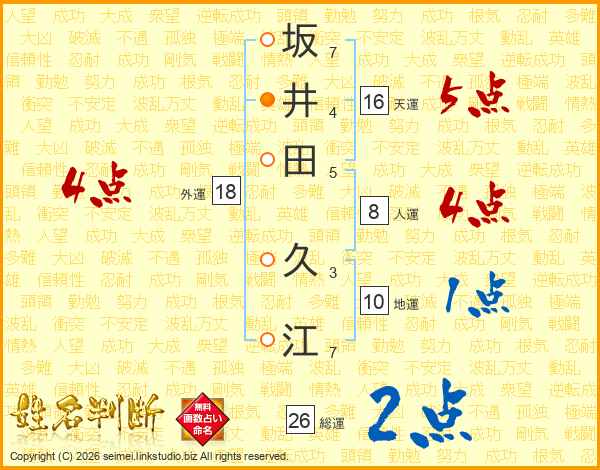 坂井田久江さんの天運は16画の5点!