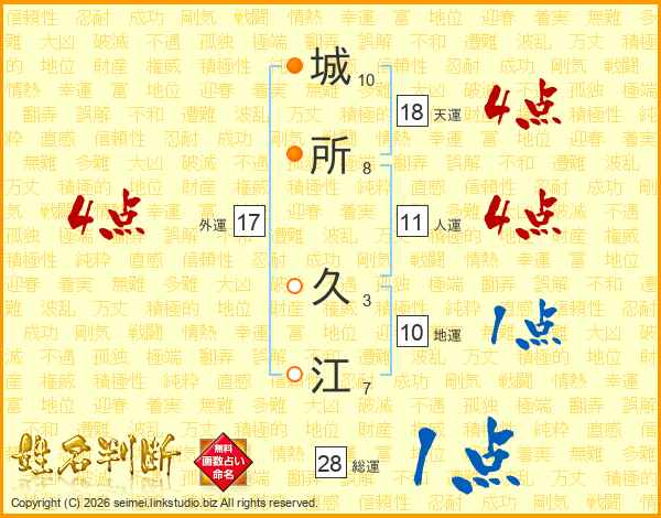 城(10画)所(8画) 久(3画)江(7画)