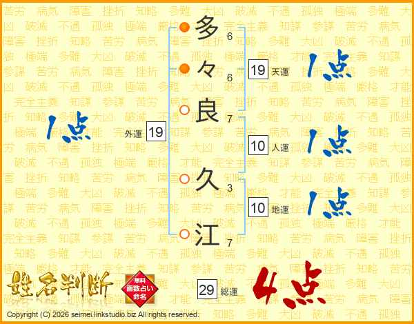 多(6画)々(6画)良(7画) 久(3画)江(7画)