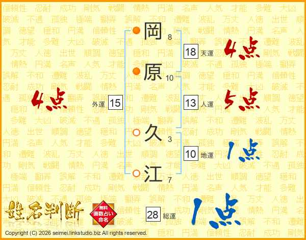 岡原久江さんの天運は18画の4点!