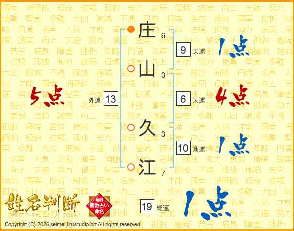 庄山久江さんの外運は13画の5点!