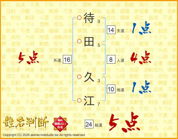 待田久江さんの総運は24画の5点!