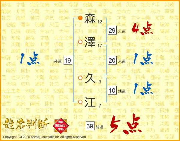 森(12画)澤(17画) 久(3画)江(7画)