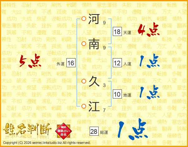 河南久江さんの天運は18画の4点!