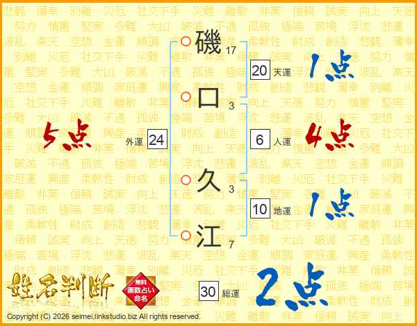磯(17画)口(3画) 久(3画)江(7画)