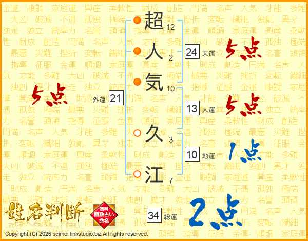 超人気久江さんの天運は24画の5点!