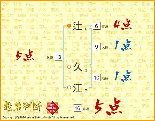 辻(6画) 久(3画)江(7画)