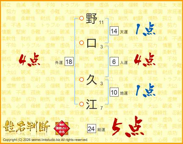 野口久江さんの総運は24画の5点!