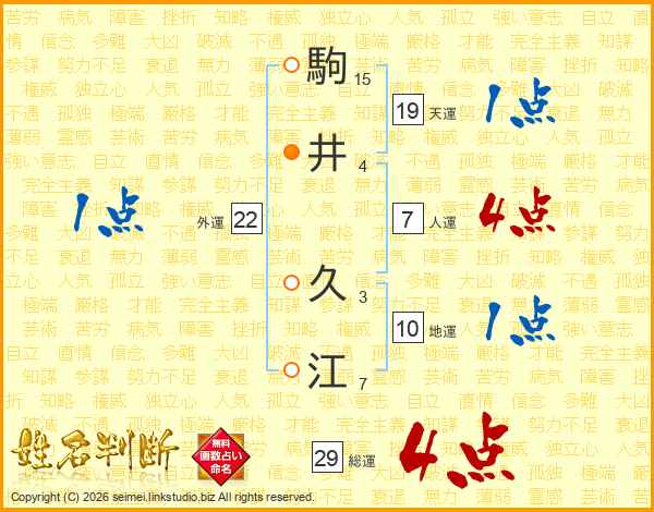 駒(15画)井(4画) 久(3画)江(7画)
