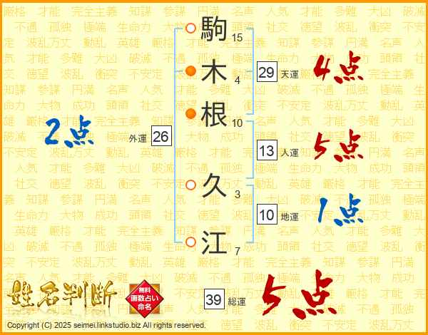 駒木根久江さんの総運は39画の5点!