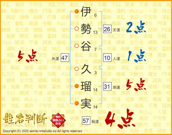 伊勢谷久瑠実さんの外運は47画の5点!