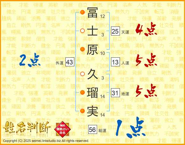 冨士原久瑠実さんの天運は25画の4点!