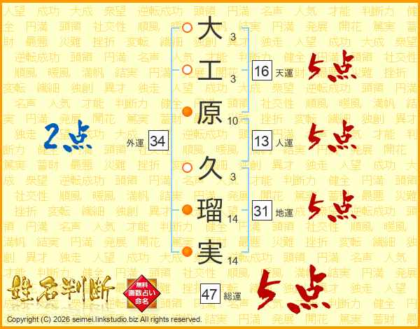 大工原久瑠実さんの総運は47画の5点!