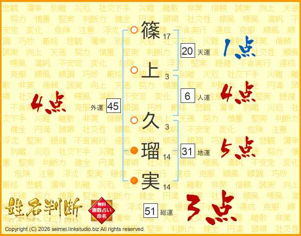 篠上久瑠実さんの地運は31画の5点!
