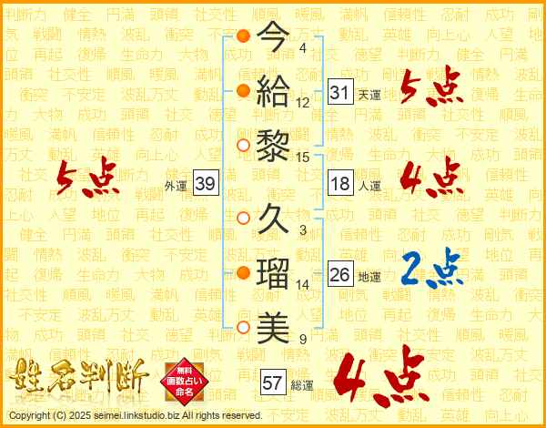 今給黎久瑠美さんの総運は57画の4点!