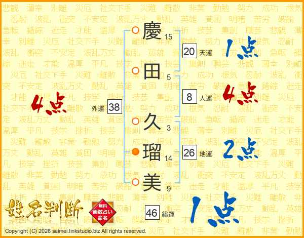 慶田久瑠美さんの総運は46画の1点!