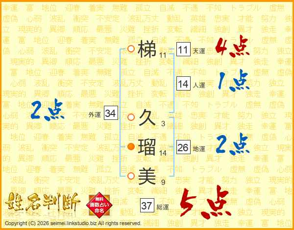梯久瑠美さんの総運は37画の5点!
