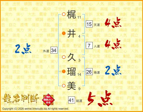 梶井久瑠美さんの総運は41画の5点!