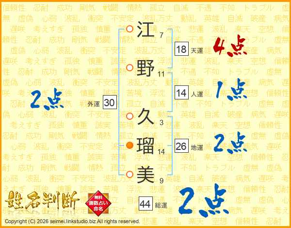 江野久瑠美さんの地運は26画の2点!