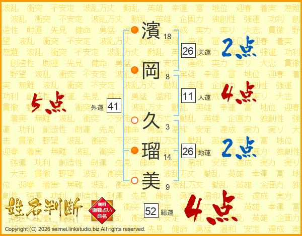 濱岡久瑠美さんの天運は26画の2点!
