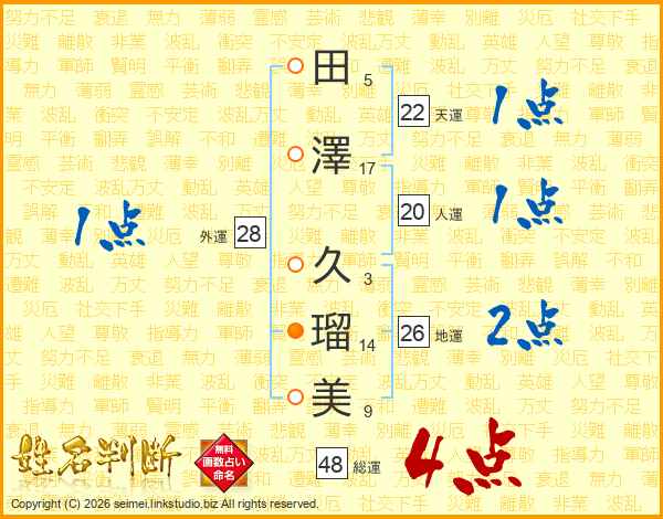 田澤久瑠美さんの総運は48画の4点!