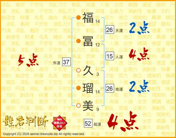 福冨久瑠美さんの総運は52画の4点!