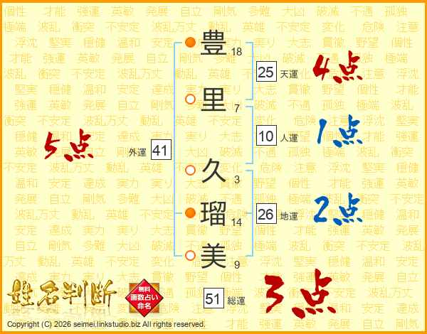 豊里久瑠美さんの総運は51画の3点!